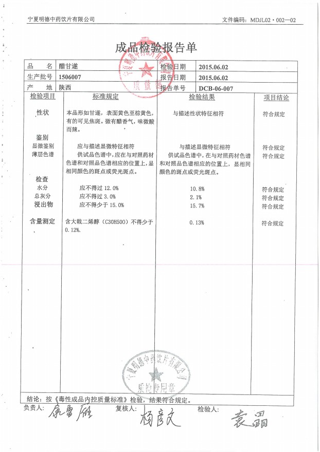 2015年質(zhì)檢報(bào)告