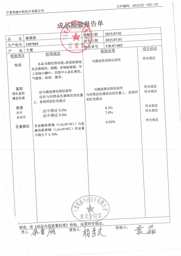 2015年質(zhì)檢報(bào)告