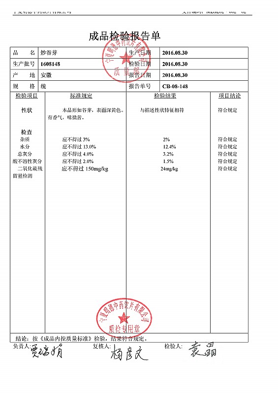 2016年質(zhì)檢報告