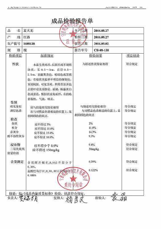2016年質(zhì)檢報(bào)告