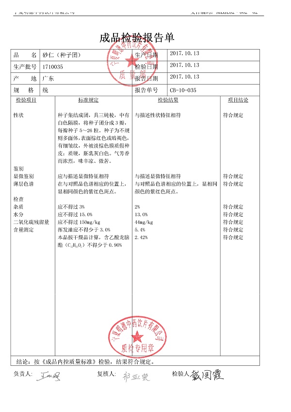 2017年質(zhì)檢報告