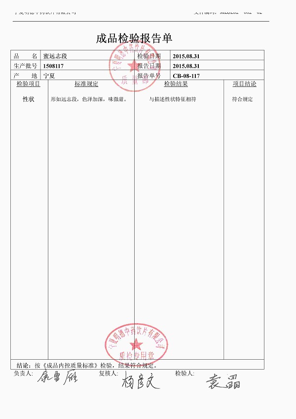 2015年質(zhì)檢報告