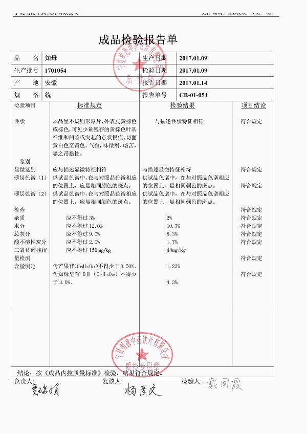 1701054知母片