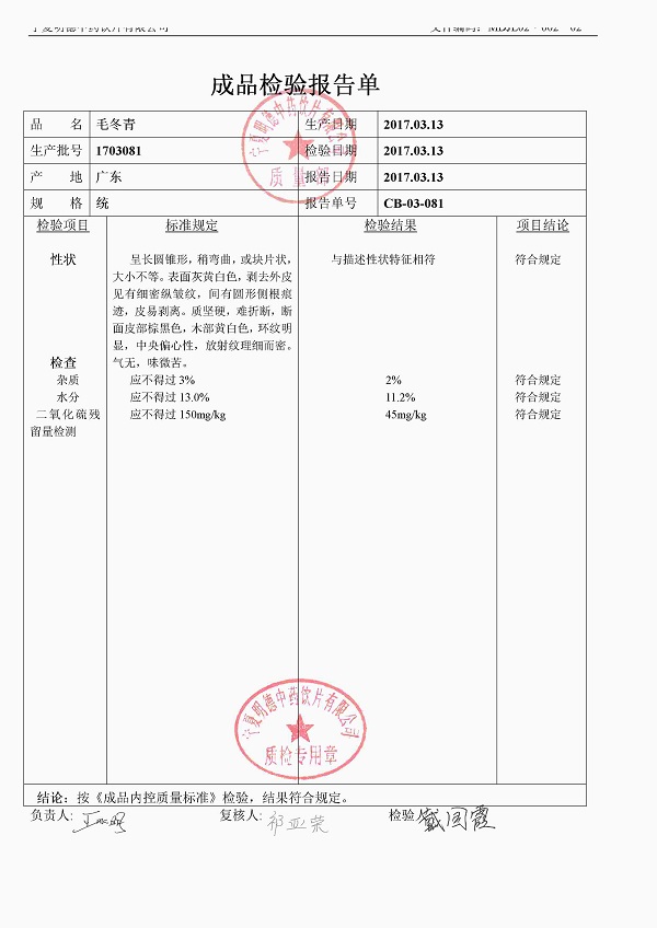 質(zhì)檢報(bào)告
