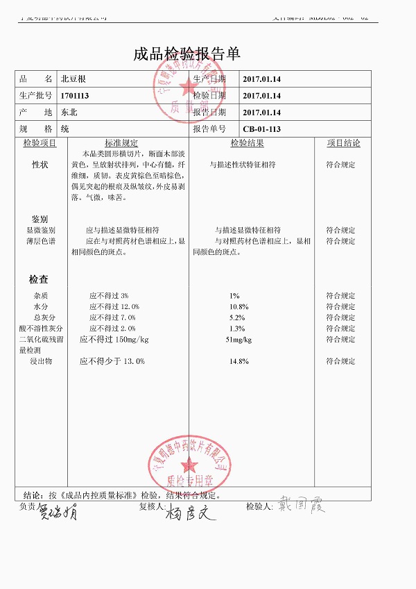 1701113北豆根片