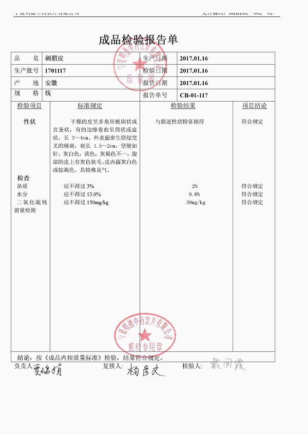 2017年質(zhì)檢報(bào)告