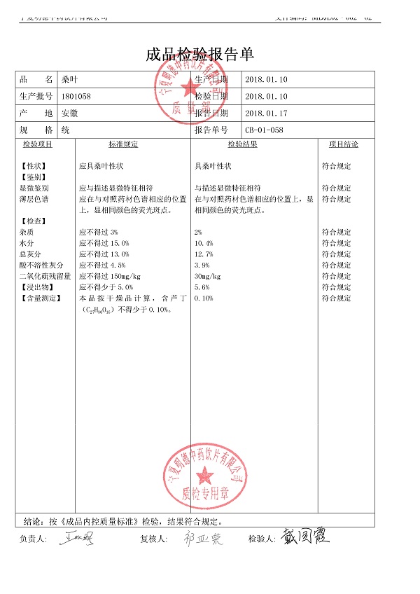 2018年質(zhì)檢報(bào)告