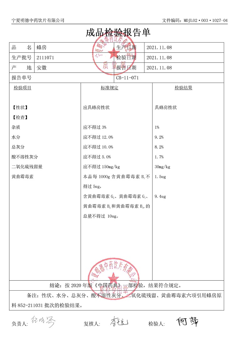 2021年質(zhì)檢報告