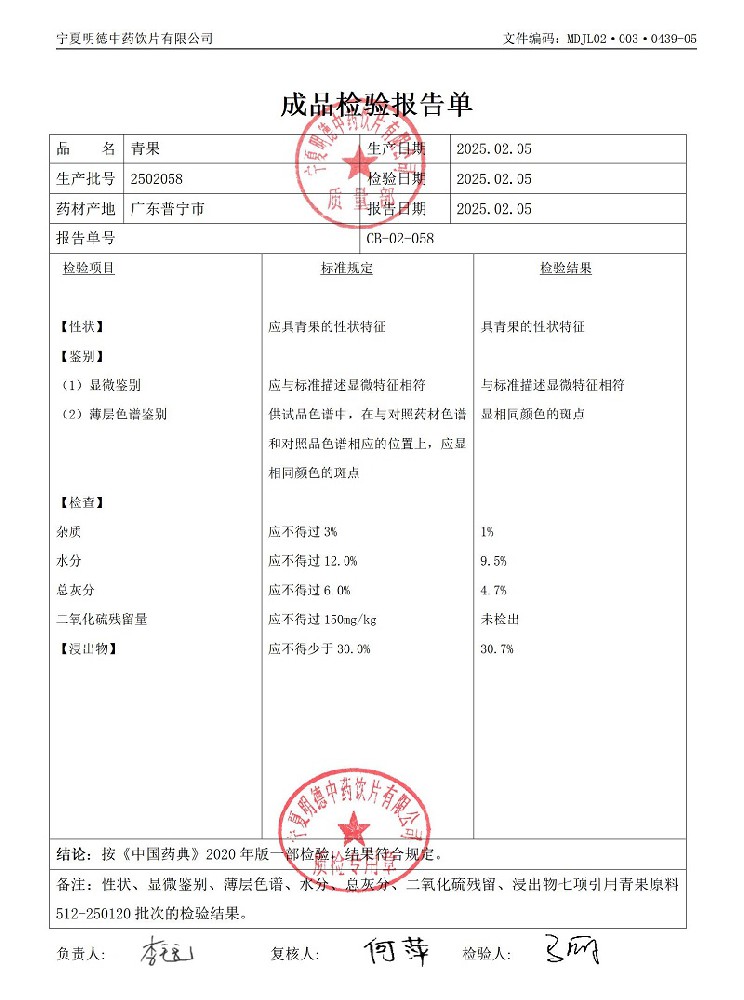 2020年質(zhì)檢報(bào)告