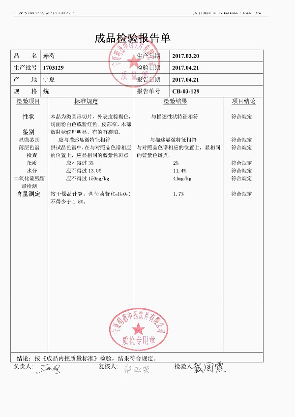 1703129(寧夏)赤芍片